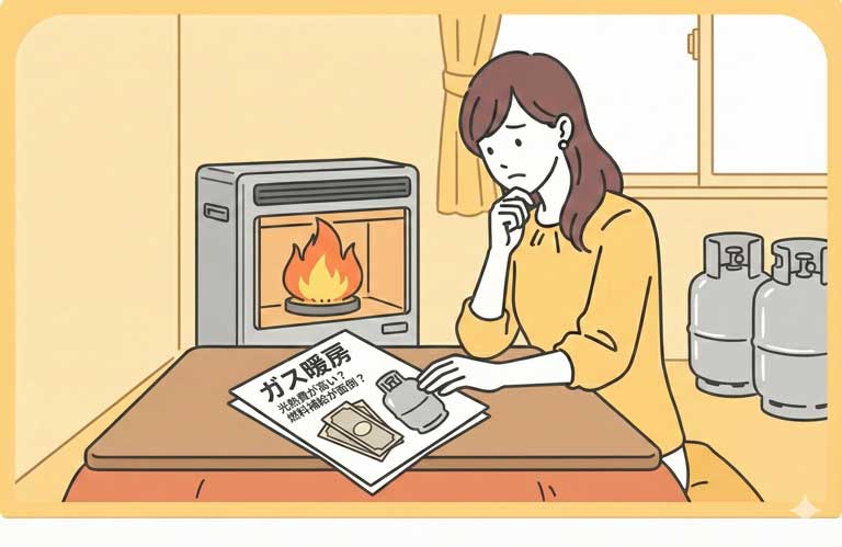 - エアコンよりは高くなりますが、驚くほど高いわけではありません。「朝の30分だけガスで一気に暖め、あとはエアコンに切り替える」というハイブリッド使いが賢い方法です。