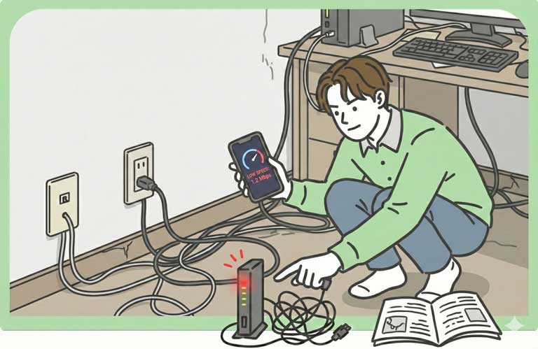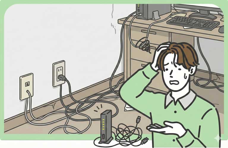- ノイズの影響: 電話線は家電の電磁波やノイズに弱く、配線が劣化していると速度がガクンと落ちます。