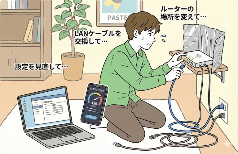これらを行っても改善しない場合は、VDSL設備自体の老朽化が考えられます。その時は、ホームルーターへの乗り換えや、管理組合への「光配線化」の要望を検討しましょう。